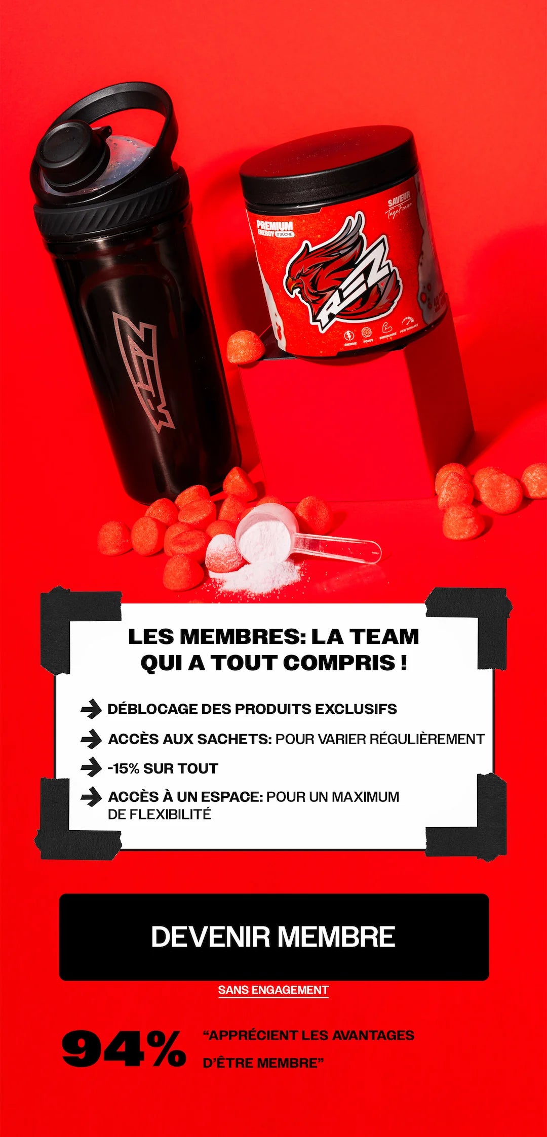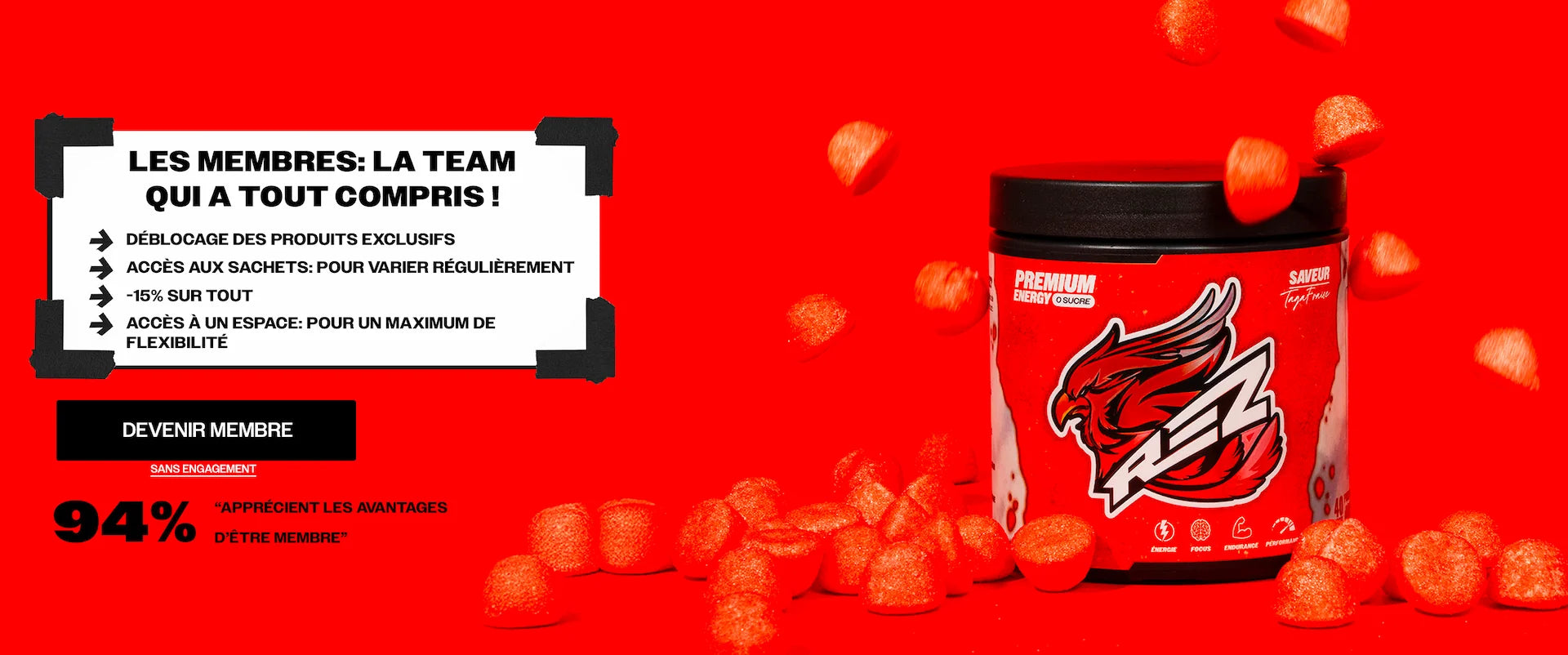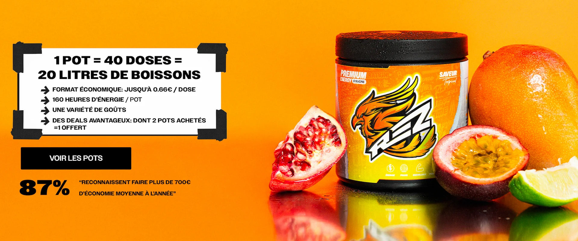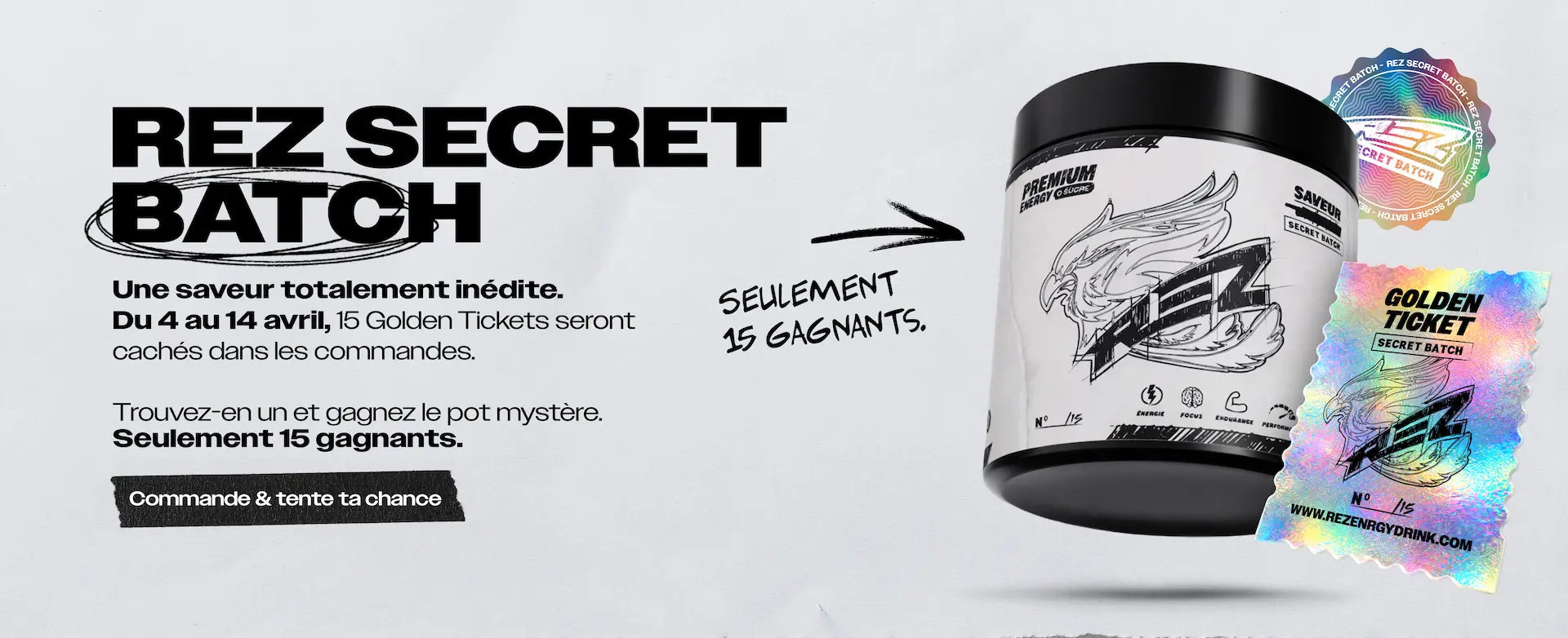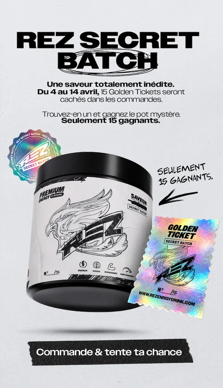 Rez® vient du gaming : “rez me”, “ressuscite-moi”. Ce n’est pas un hasard : on a traversé le chaos, et on en est sortis plus forts. Comme le phénix sur nos packagings, symbole de renaissance : rien n’est jamais mort. On avance avec une énergie brute, celle qu’il y a dans chaque shaker de Rez®, pour exploser tes limites.