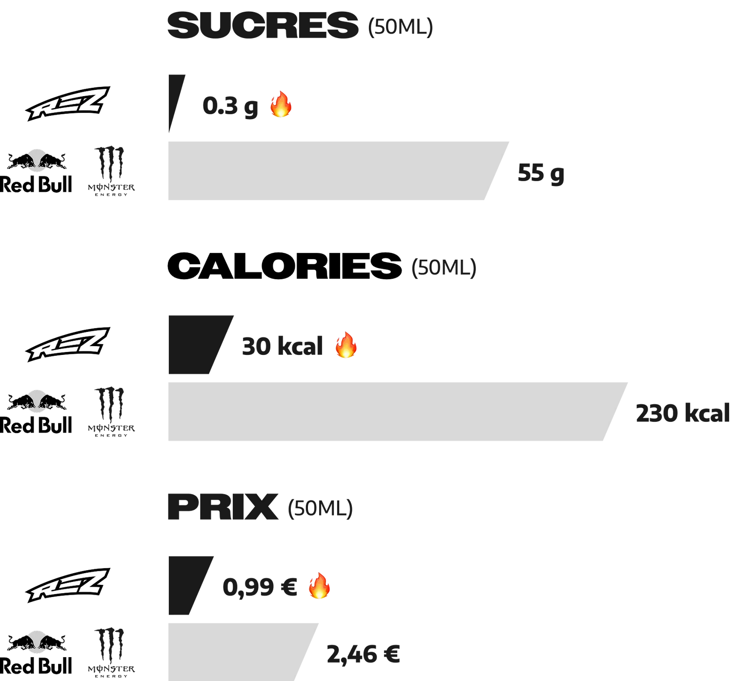 Moins de sucre. Moins de calories. Plus d’effet. Et jusqu’à 2,5x moins cher.