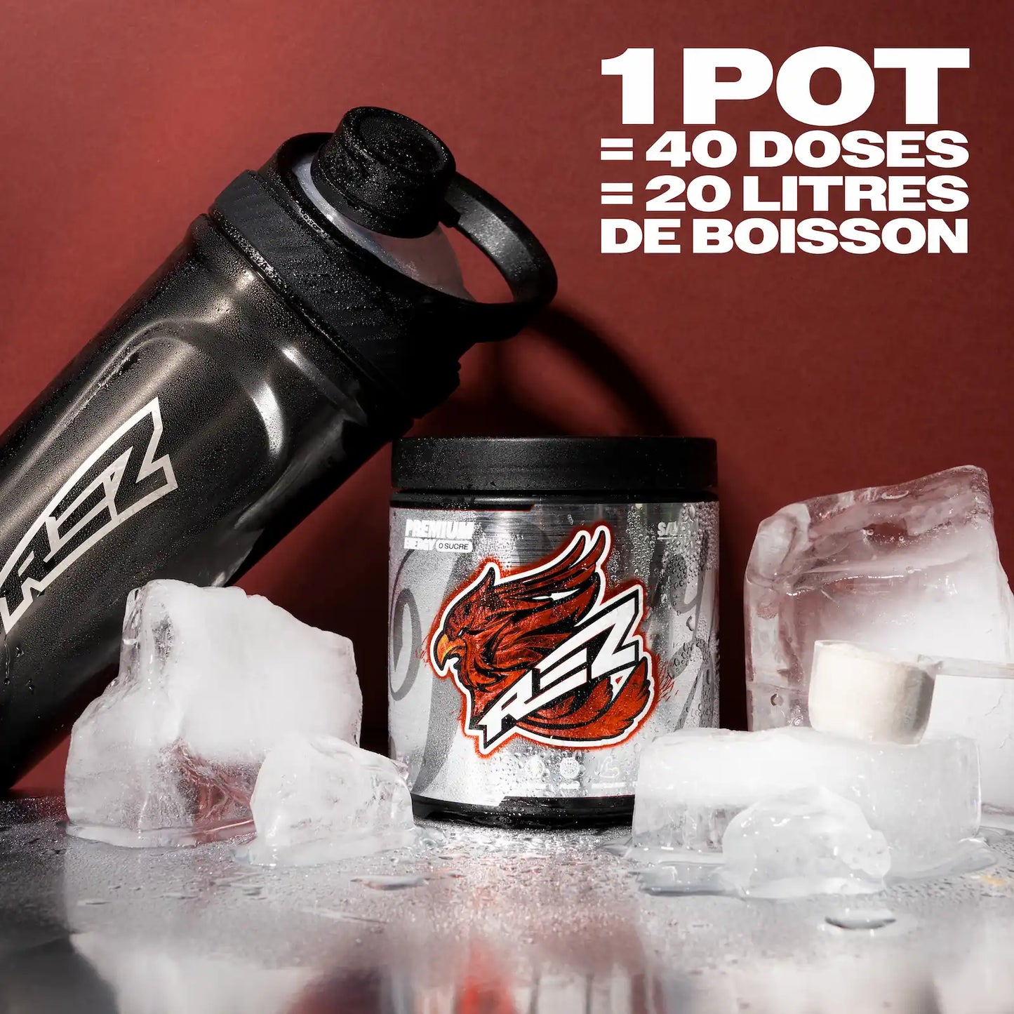 Remplis ton shaker Rez avec 300 à 500 ml d’eau bien fraîche, ajoute un sachet ou une dosette et secoue intensément quelques secondes.