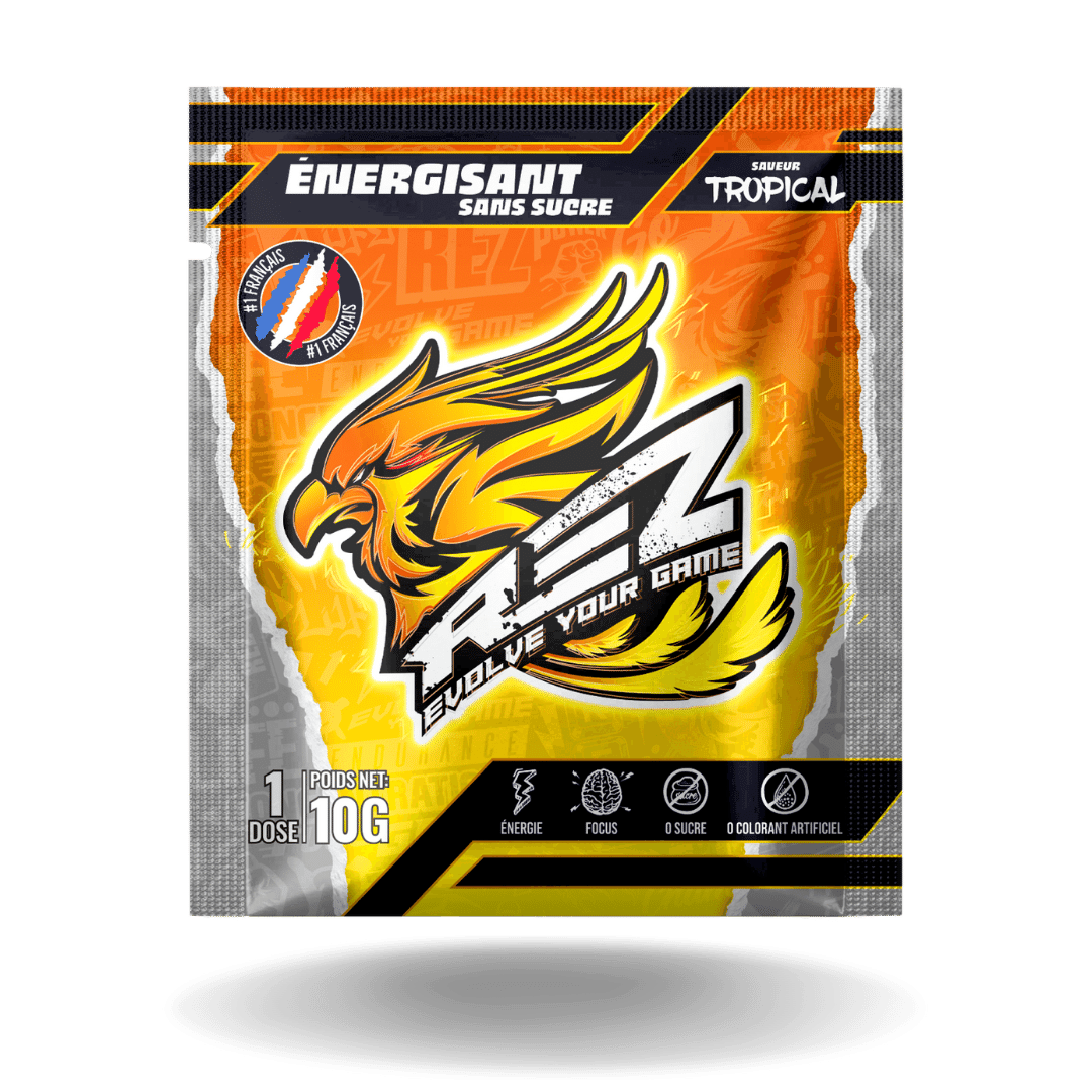 Rez c’est quoi ? C’est une boisson énergisante en poudre à diluer, sans sucre et faible en calories qui contient des vitamines, minéraux et acides aminés pour un boost d’énergie durable jusqu’à 4 heures sans crash. Avec Rez fini les coups de mou ! 100% goût, 0 compromis.